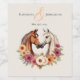 Lägg till lite elegans i vin flaskor med dessa Vin-etiketter. Den här samlingen har en elegant som är utformad för hästar som omges av en hjärtformad, färglös blommigt arrangemang och symboliserar kärlek, harmoni och enighet - perfekt för en land-western händelse med rustisk charm. De här etiketterna omvandlar ditt favoritprogram vin till elegant i firande. Anpassa dem med din namn och bröllop-dejt och skapa en unik beröring för dina gäster att njuta av. Utforska den här snyggten som tillägg till din firande och höj ett glas till din kärlek-historia i Exquisite stil.