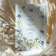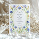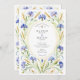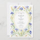 Inbjudan dina gäster till firande fyllda med naturcharm och konstnärlig elegans. Den här fantastiska bröllopsinbjudan innehåller en handmålad vattenfärg gräns av vackra vilda blommor, som visar levande kornblommor i nyans av kornblomblått och mjuk lavender, som är lätt sammanflätad med roliga stjälkar av guldvete. Den symmetriska, Art nouveau-inspirerade utformningen har en roterande grönt och guldviner som skapar ett vackert ovalt ram för dina bröllop-detaljer. En delikat, handmålad guld-oval i mitten tillför en aning raffinerad lyx. Denna utformning är perfekt för landsbygden, chic, sen sommar eller bröllop under hösten i tidigt.