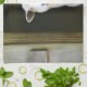 Denna maträtthandduk presenterar en sötsak stillar fåranseende i dörröppningen av hans hem i Connecticut.