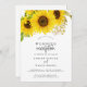 Denna landliga solrosbröllopsinbjudan är perfekt för en rustik efter-fyrabollsfest. Den klassiska moderna designen har vackra ljusgula akvarellblommor med ett vintage utomhus sommar- eller hösttema. RSVP-kort säljs separat, eller så kan du lägga till RSVP-information på baksidan av kortet.