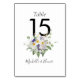 En vacker sommarblomsterbukett sitter ovanför dina personliga bordsnummer och namn i elegant text. Designad av Thisisnotme©