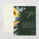 Den här solrosgröna mottagningskortet "tack" är perfekt för ditt enkla klassiska boho-sommarbröllop i trädgården eller ladan. Designen har en bukett med vintage-vattenfärg-gula och rustika orange solrosor, elegant modern grön eukalyptus och en vit elfenbensros. Designen är idealisk för ett avslappnat minimalistiskt höstbröllop utomhus. Vänligen kontakta oss om du har några frågor om produktens design; skål!