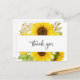 Den här solros-tack-kortet är perfekt för en rustik bröllop. Den klassiska moderna designen har vackra ljusgula akvarell- blommor med ett vintage-utomhus-sommar- eller hösttema. Personifiera baksidan av vykortet med era namn, er returadress och ett tackmeddelande. Alternativt kan ni lämna tackmeddelandemallen tom för att handskriva en genomtänkt personlig notis på varje kort efter att de har anlänt. Dessa kort kan användas för ett bröllop, brudvisning eller någon annan speciell händelse.