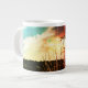 Golden-vete mot en färgad himlar av blått, guld och lila