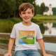 Ta med dig utomhusen till vardaglig bära med den här pojkarna T-shirt som visar ett landskapshus vid illustrationen sjö. Utformningen visar ett strålande hem, lugn vatten, och en solnedgång, ge den här skjortan ett färgstarkt och roligt utseende. Det är bekvämt och mångsidigt, det är underbart för skolorna, teatern eller helg. En perfekt för pojkar som njuter av natur, landskap och kreativ.