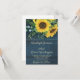 Landsbygdens solrosor på blå träbakgrund för att tillkännage din speciella dag, redigera texten för att passa.