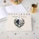 Fånga kärnan i din kärlek-historia med den moderna gästboken. Den här vackert designade gästboken. Med en elegant som är utformad för svarta och vita hästar som omger sig inom en hjärtformad blommigt arrangemang symboliserar denna samling kärlek, harmoni och enighet - perfekt för ett land-westernt bröllop med rustisk charm. Anpassa den med namn och låt dina gäster lämna sina hjärtliga budskap och skapa en omhuldad keepy av din speciella dag.
