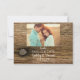 Ange en relaxerad ton för kommande ungdom med den charmerande vita Daisyn och Barn Wood Landsbyggsbröllop Spara datum meddelande. Denna informella och elegant anpassningsbar ranch giftermål behålla med datumangivelsen innehåller en blommigt foto av en vit daisy blomma och blommar av brunt, avvanda ladun med ett rostiskt nagel huvud. Anpassa den med parets namn, bröllop datum och foto.