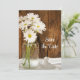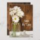 Meddela dina kommande stil-nuptialer med det charmerande Mason Burk och White Daisys Landsbyggsbröllop Spara datum meddelande. Den här informella och söt anpassningsbarna Rustic chic giftermål behålla med datumangivelsen innehåller ett digitalt förbättrat foto av blommigt av en burk för glaskonservering med vita daisy, blommor och blommar för avvanda brunladun. Inspektion i perfekt för ditt avslappnad-lantgårdstema eller för ceremoni och mottagning i party giftermål.