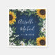 Landsbyggsbröllopet Napkins, som har en marin blå lada med vattenfärgade daisy, solblommor, grönska, baby andedräkt och lilja av dalen.