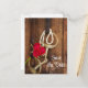 Meddela ditt kommande lantbruksföretag eller westerna stamtematuptialer med det charmerande Röd ros och Horse Bit-Landsbyggsbröllopet Spara datumvykortet. I denna anpassningsbar av den rustiska chicen i östra stil giftermål finns det på vykortet ett digitalt högkvalitativt fotografi av blommar av blommor från röd ros, pärlhalsband, hästbitor och läderhartser med en vävnad bakgrund av bruna lingor. Perfekt för ceremonin och mottagningen av avslappnaden party giftermål.