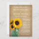 Inbjudan din familj och dina vänner till ditt landsbyggsbröllop med de här inbjudningarna till burk bröllopsinbjudningar. Konstruktionen har solblommor i burk med blå mason med mörk lada på baksidan av inbjudan.