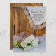 Meddela dina kommande vårtidstimmar i mars, april eller maj med söt och charmig Rustic White Tulips Landsbyggsbröllop Spara datum meddelande. Den här avslappnaden är fortfarande ett anpassningsbar-ranchtema giftermål behålla. Datummeddelandet innehåller ett femtonigt fotografi av en bukett av vita blommar från tulpanblommor, vit halshals, vit möhippa och en snöre-beklädd vit linne-näsduk med brun lada-bakgrund.