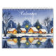 The painting depicts a snowillage wy vith small, brightly lit houses, reflected in a frozen lake or stream.