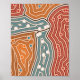 Eine Illustration die auf dem Malstill der australischen Ureinwohner, den Aboriginal, basiert und eine Landschaft vor der Besiedelung darstellt. En illustration baserad på stil i den ursprungliga punktmålningen som skildrar landskapet före beläggningen.