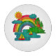 Färgbeläggning av landskapet i tecknad stil med båtar som seglar längs flodens sol moln och regnbåge