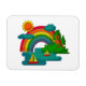 Färgbeläggning av landskapet i tecknad stil med båtar som seglar längs flodens sol moln och regnbåge