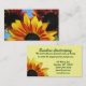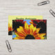 Denna blom- visitkort som annonserar landskap som är tjänste- glöder precis, med ljusstyrka och jubel! Tre brilliantly färgade solrosor är upplyst av solljuset som strömmer till och med petalsna. Blommorna visar en ursnygg palett av guld, gult, orange, rött och brunt. Gröntlöv och blå himmel avslutar denna sammansättning av färg och bildar. Baksidaen har en solros. All text kan skräddarsy för att passa dina behov.