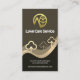 Över längst upp ljuger en guld-liggande logotyp som du kan använda med jobbtiteln under. På kortets bas finns en slogan och e-postkontakten. Ändra bildtextkommentarerna till befattningens titel och slogan till kostym för dina egna tjänste- eller affärsbehov.