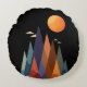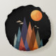 En bergsgrupp med sol i bakgrunden, vektorkonst, geometrisk abstrakt, lodrät tapet, grönt och orange tema, måne ljus i bakgrunden, jordnära färg.