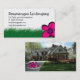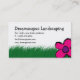 Landskap/landskap företaget, gräsmattaomsorgunderhåll, att arbeta i trädgården, eller det gröna/miljövänliga företaget, landskap den gröna gräsvisitkortunderbaren för någon trädgårdsmästare. Med det nätt huset och trädgården fotografera på baksida.