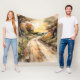I denna fängslande färgsmålning med titeln "Ligcape of Sunset Land Road", transporterar konstnären tittaren till ett friskt landskap som slår till med vridens varma nyanser. I scenen skildras en smal land-väglindning på ett skonsamt sätt genom att riva fält och rullande backe. Himlar är ett gult-, orange- och brunt som redot sol för att sätta sig över horisonten och kasta en gyllene glöd över landskapet.