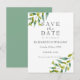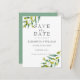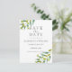Detta eleganta Rädda Datum-kort har delikat vattenfärggrön lövverk som inramar dina personliga detaljer för att tillkännage ditt speciella datum. Designad av Thisisnotme©