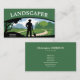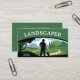 Gardkonstruktörer, landskapsarkitekter, trädgårdsodlare, trädgårdsodlare, professionell- och gräsmatta-vård, träd-rensning, arborist och underhåll av gröntar är några av de människor som användor i affärskortet. Utformningen består av en silhuett av en man med en hatt som håller en skugga framför ett lush grönt liggande med träd, blommor och en bana.