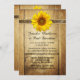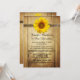 En romantisk efterbröllopsfest inbjudan med en solros på en bakgrund av rustik trä med ett band med en träd bark textur och eleganta pärlor. Perfekt för enbart mottagning eller efterbröllopsfirande i landlig stil eller i en lada.
