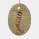 denna gulliga strumpaprydnad är perfekt för landjulen med en traditionellstrumpa på en burlapbakgrund som hängs av popcornkranen