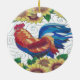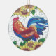 Denna skulle roliga illustration är ett underbart tillägg till din chic berlockdekor för land eller som en gåva för någon som samlar hönor eller tuppar. Denna är en vattenfärg ritar illustrationen av en tupp som in göras, rostar rött, bryner och slösar med solrosor upptill och grund för att göra en gräns. Den inramas all in med kontrollerat mönster för blått och för vit ett gingham.