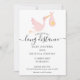 Långdistansdusch | Strö ut via post Inbjudan med en söt rosa stork som bär en mycket speciell leverans. Denna eleganta inbjudan till baby shower, strö ut eller par-dusch via post är perfekt för alla små flickor som är på väg. Lägg till din speciella händelseinformation i modern text. Designad av Thisisnotme©