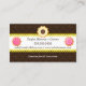 ©Socialitedesigner 2014. Elegant design för muffinbagerivisitkort som inkorporerar en choklad - brun damastast mönsterbakgrund, det gula snörebanret för din text och kakainsida som ett snöre cirklar. Alla designinslag kan resizeds, flyttat eller tas bort för att passa dina krav. Om du kräver HJÄLP med att skräddarsy, behaga kontaktSocialitedesigner.