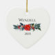 En fet silhuett av en Långhårig Chihuahua, med vattenfärgspoinsettia på framsidan och baksidan. Lägg personligens hund namn och dejt på baksidan. Gör en underbar gåva till vilken hund älskare som helst.