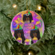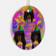 Långhårig svart dachshund julgransprydnad keramik