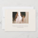 Den här bröllopsinbjudan har en elegant och minimalistisk design som på ett utmärkt sätt balanserar sofistikering med enkelhet. I överkanten ger en delikat konst av två brider som går hand i hand en graciös och intim ton. Parets namn visas på en framträdande plats i ett klassiskt serif-teckensnitt, följt av en hjärtfull inbjudan i ett modernt, handskript som tillför ett personligt tryck. Information om inbjudan, inklusive datum, tid och plats, presenteras i ett rent och lättläst format i mitten av kortet, vilket garanterar att all viktig information är tydlig och tillgänglig. Utformningen är centrerad på en mjuk bakgrund med gräddvit färgad, som skapar en tidslängd och ett förfinat utseende. Denna inbjudan är perfekt för par att söka en snyggt och underskattad väg till inbjudan gäster till sin speciella dag, med tonvikt på elegans och meningsfull enkelhet.