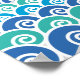 Poster med olika nyanser av blått vågar med sol stigning vid horisonten.