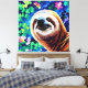 Sloth - 40 x 40 Kanvastryck är en färgstark konsthendering av en slutt's ansikte omgiven av blommor. Bilden har tillverkats av FancifulFusion - ett dotterbolag till ArtistsQuest - som använder olika konstformer av stilar och påverkan, och sedan färdigställts av ArtistsQuest.