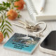 Ta en ledtråd från den här avslappnade sköldpaddan och sakta ner. Den här nyckelkedjan har ett foto av en mycket avslappnad sköldpadda som dippar hans framfötter in i akvariet vatten och som borrar i sol. Trytans reflektion kan ses i lugnen vatten. "Sakta ner och njut av resan" kan anpassas snabbt och enkelt om du vill.