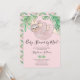 Sötningsmedel för Rosa av djur efter e-postinbjudan. Den här vackra inbjudan till babyduschen innehåller en leende baby-lutning som hänger från gren och är inramad med grönt vattenfärgsdjungel löv. Perfekt för en flicka babydusch. Anpassa den här inbjudan med din information. Ursprunglig vattenfärg © Michele Davies.