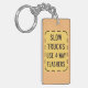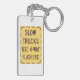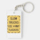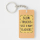 En långsam vägskylt i lastbilar som säger använda 4-vägschassers. Den här designen ser ut att vara effektiv i den här nyckelkedjan