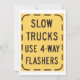 En långsam vägskylt i lastbilar som säger använda 4-vägschassers. Den här designen ser ut att vara verkligen vid den här inbjudan