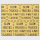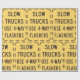 En långsam vägskylt i lastbilar som säger använda 4-vägschassers. Den här designen ser ut att vara verkligen på dessa figursättningsPappra