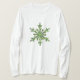 Vintertemed kvinnlig T-shirt med lång sleeve med en vacker snöflinga av gräs grenar. En röd jul i boll hänger på en av gräs grenar. Se även: