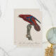 Denna slående illustration visar den livfulla röd lorin, vetenskapligt känd som Eos bornea (historiskt också kallad Trichoglossus borneus), en strålande färgad papegoja som är infödd på de indonesiska öarna, särskilt Moluckerna. Känd för sin livfulla karmosinröda fjäderdräkt med accentuerande djupblå markeringar på vingarna och stjärten, är den röda lorin en framstående art bland tropiska fåglar. Dess starka, böjda näbb och smidiga fötter gör den väl anpassad för att äta nektar, pollen, frukter och mjukt växtmaterial - nyckelkomponenter i dess naturliga kost. Dessa papegojor är mycket aktiva, sociala och ses ofta i par eller små flockar i skogsmiljöer.