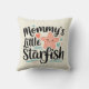 Denna yngeldaghem dekorativ kudde har frasen "Mamma's Little Starfish" i ett lekfullt, elegant typsnitt med en charmerande stjärnfisk.