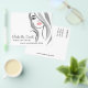 Enkel, svart och vit illustration med en vacker flicka med långt rakt hår och pastellrosa läppar på vit bakgrund för professionella sminkare. Elegant, modern, trendig. Perfekt för din företagsreklam. Lämplig för sminkare, kosmetologer, ögonfransförlängning, frisörer, stylister, spa-salong, hår- och skönhetssalong eller modellagentur. Kan anpassas.
