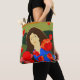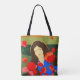 Långtrad kvinna som går i vallmo fält tygkasse