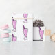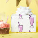 Rosa mjölkskaka i ett glas med halmbrytning papper.