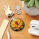 En knappbricka med ett foto av en Lantana Flower i närhet. Jag tog det här fotot i en blomsäng vid en park i Cardiff (Wales UK) nära min bostad. Tydligen är de en tropisk blomma men odlas också i tempererade klimat. Även om det regn vi har haft i år, så vågar jag säga att det känns hemma i Monsoon :)